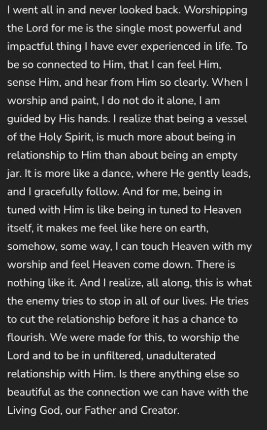 How is this any different from all the cults and how their leaders make extra ordinary claims? Now, don’t get me wrong, I am not judging this lady personally. I took the time to read her story on her own website, how she was abused as a Child and how her journey eventually led her to become a Christian & a painter. Both of those are perfectly valid.